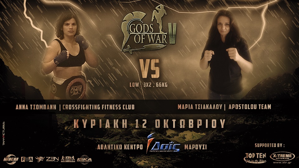 Ένας ακόμα γυναικείος αγώνας θα είναι αυτός της Τσομπάνη Άννας , με προπονητή τον Αντρέα Καλύμνιο, η οποία θα αγωνιστεί με την Μαρία Τσιάκαλου του Βαγγέλη Αποστόλου. Ο αγώνας θα γίνει με όρους low kicks στα 66 kg . Η επιλογή και αυτών των αγώνων έγινε γιατί gods of war δίνει ευκαιρία και βήμα σε ανερχόμενους αθλητές.